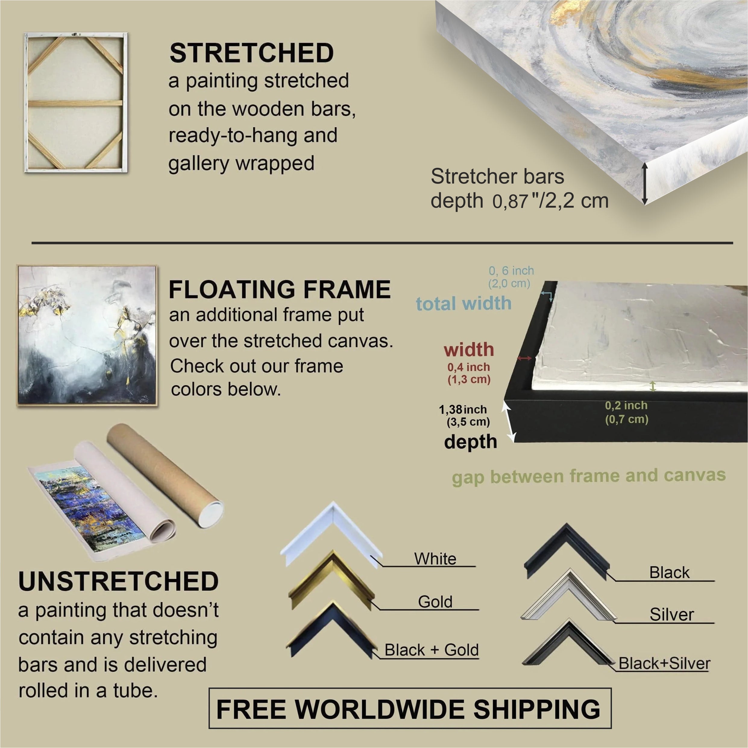 We offer free worldwide shipping with our artworks