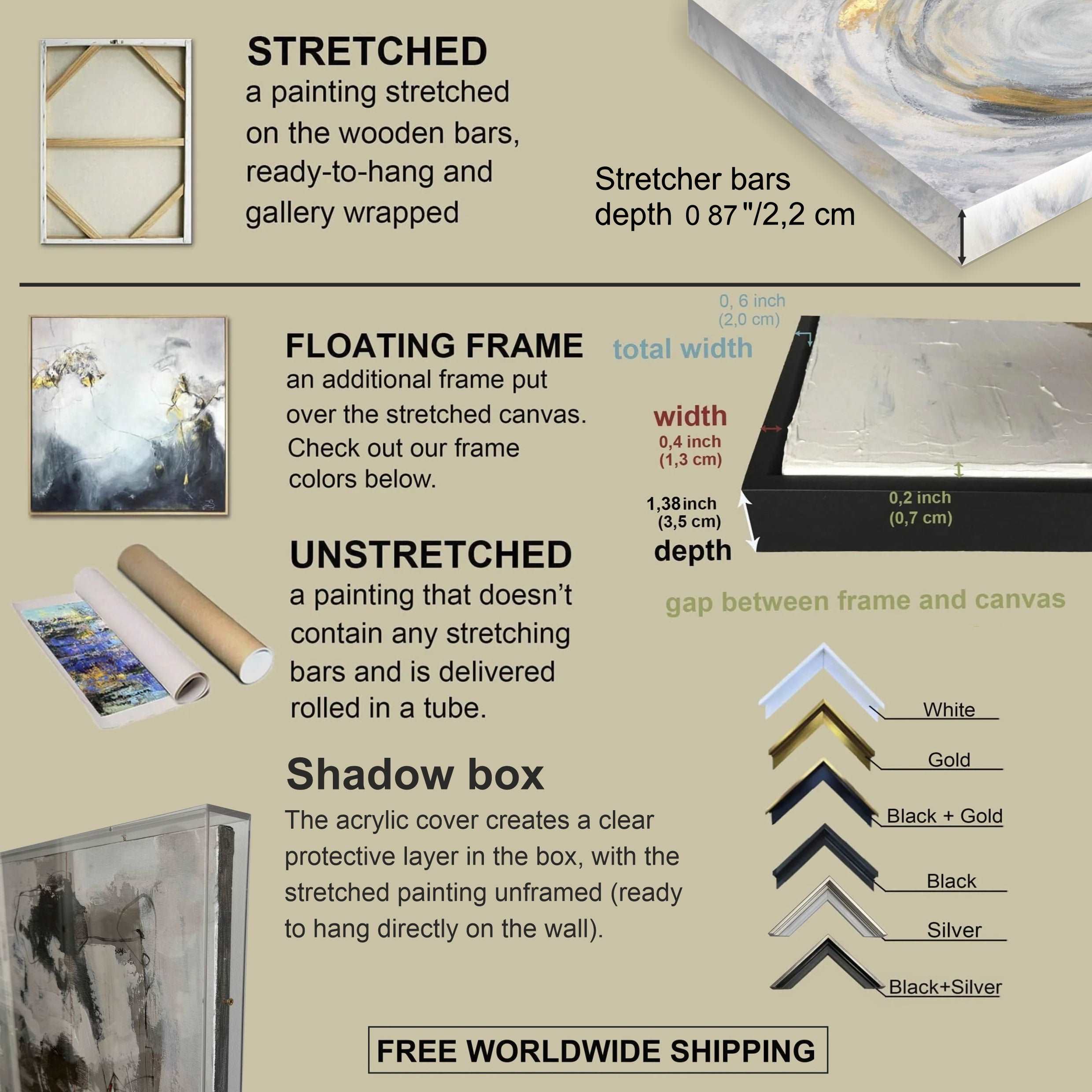 We offer free worldwide shipping with our artworks